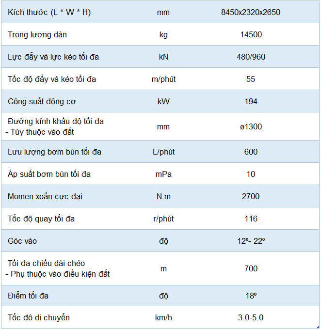 3. Đầu dẫn động dự trữ lực tăng cường (lực đẩy và lực kéo). Lực đẩy và kéo có thể tăng từ 450KN đến 900KN, đảm bảo an toàn cho các công trình có đường kính lớn