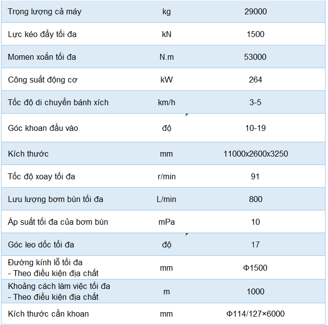 THÔNG SỐ KỸ THUẬT CHÍNH